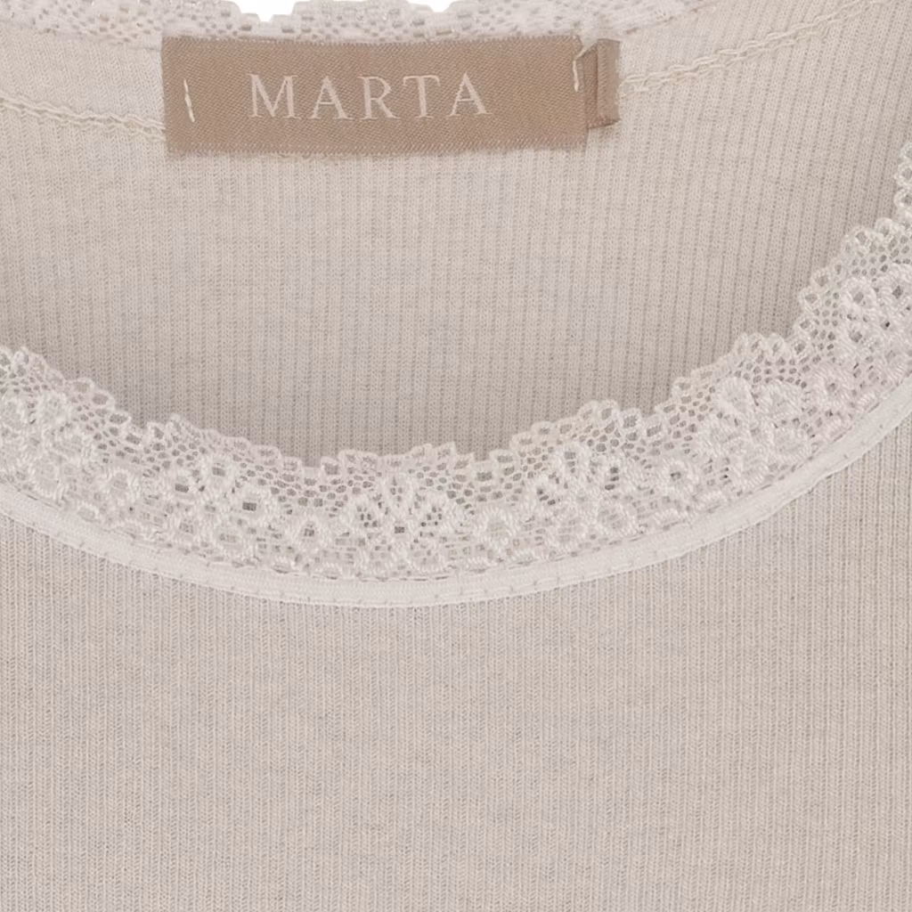 Angeline Top 299 kr Storlek S/M L/XL Färg Vit beige rosa I lager. Lägg i korgen Produktbeskrivning Recensioner elastisk ribbad linne med spetsdetalj upptill. Kommer från märket Marta du chateau. Material:• 95% bomull•5% elastan