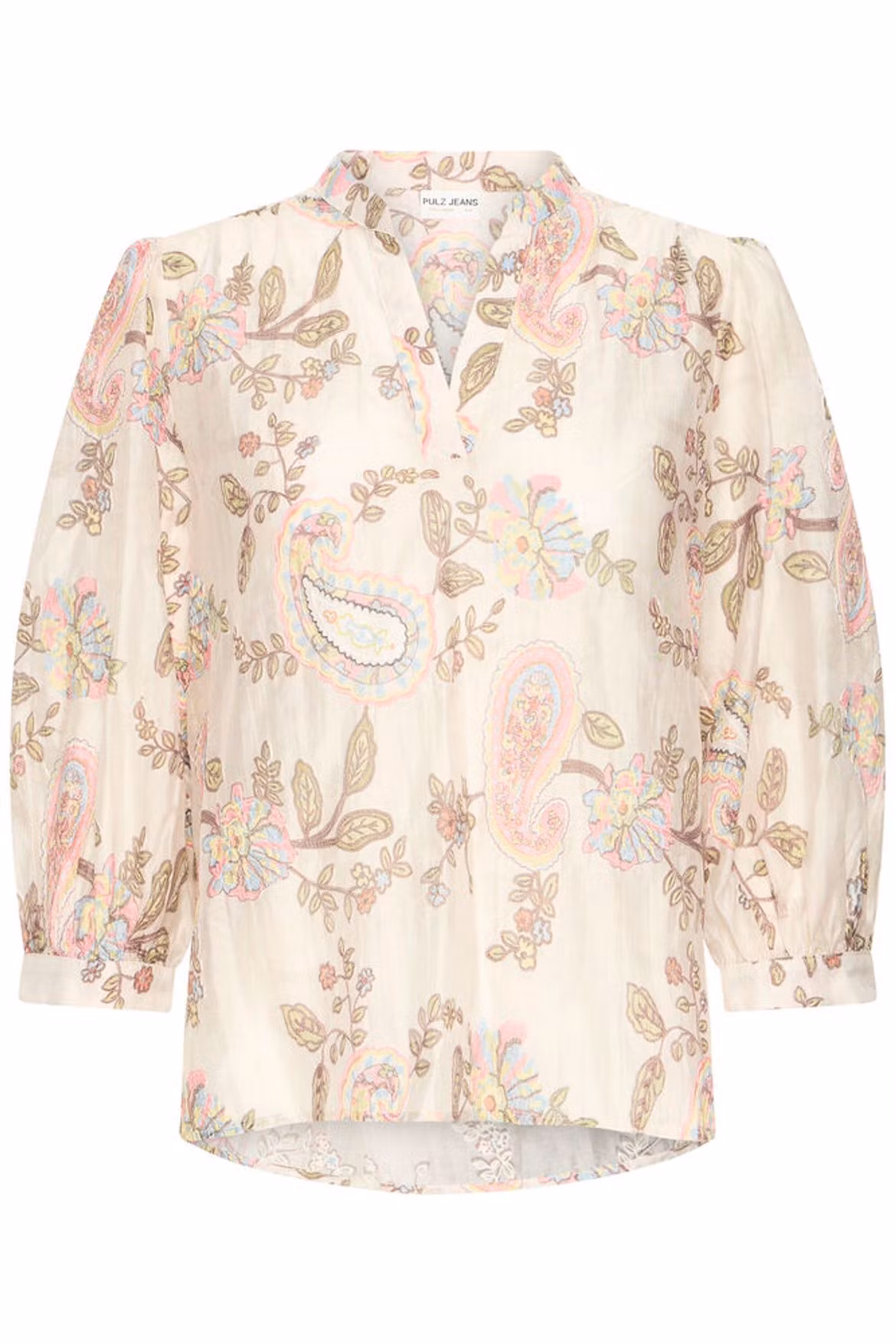 Beckett blouse 899 kr Storlek S M L XL XXL I lager. Lägg i korgen Produktbeskrivning Recensioner Blus i varma vår/sommar färger har ett otroligt fint mönster i blommiga detaljer. Kommer från märket Pulz jeans Material •70% lyocell•30% polyamid