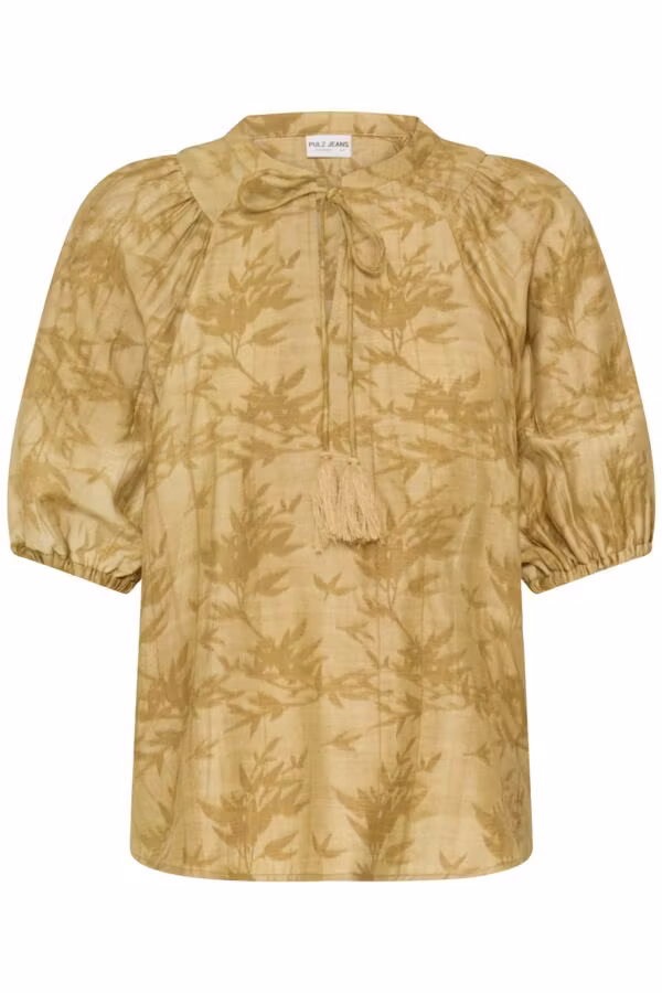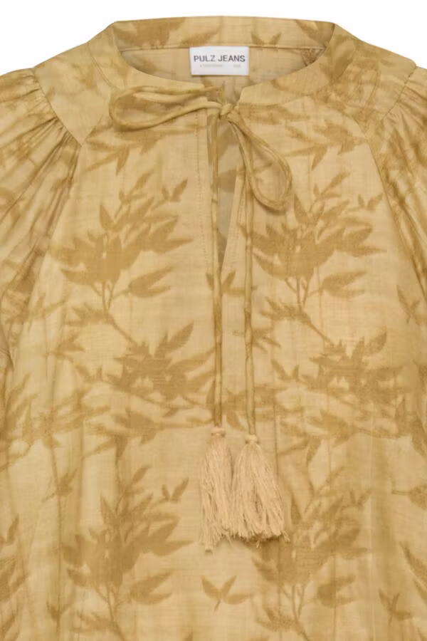 Concetta blouse 899 kr Storlek S M L XL XXL I lager. Lägg i korgen Produktbeskrivning Recensioner Härlig mönstrad blus i gul/brun färg med en härlig snörning detalj i halsen. Kommer från märket pulz jeans