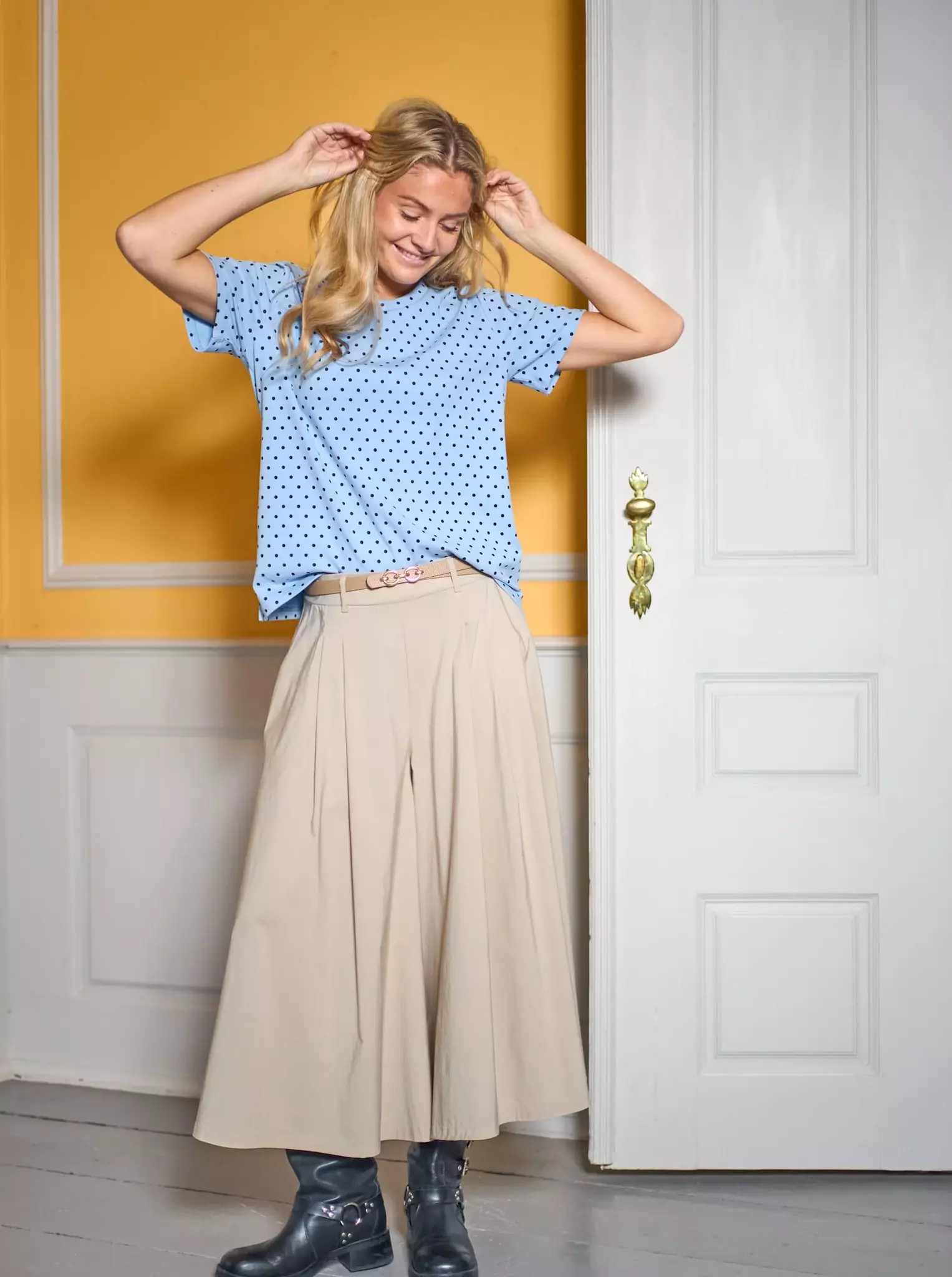 Coolaste byxkjol med elegant A-form med breda veck som ger ett fint fall och extra rörelsefrihet. Kjolen är i princip ett par vida byxor, men är designad så att de ser ut som en kjol. Designad med bälteshällor och resår bak i midjan för en bekväm passform. Kommer från märket Black colour