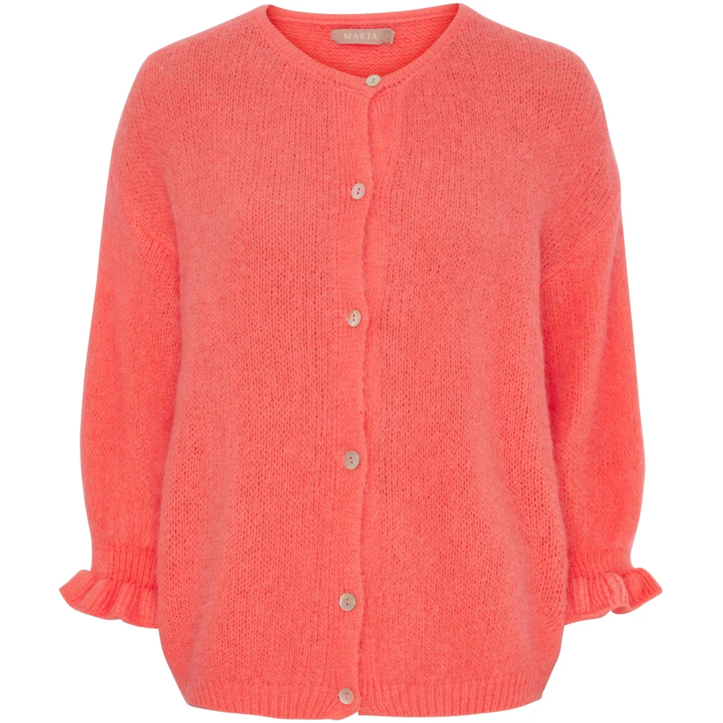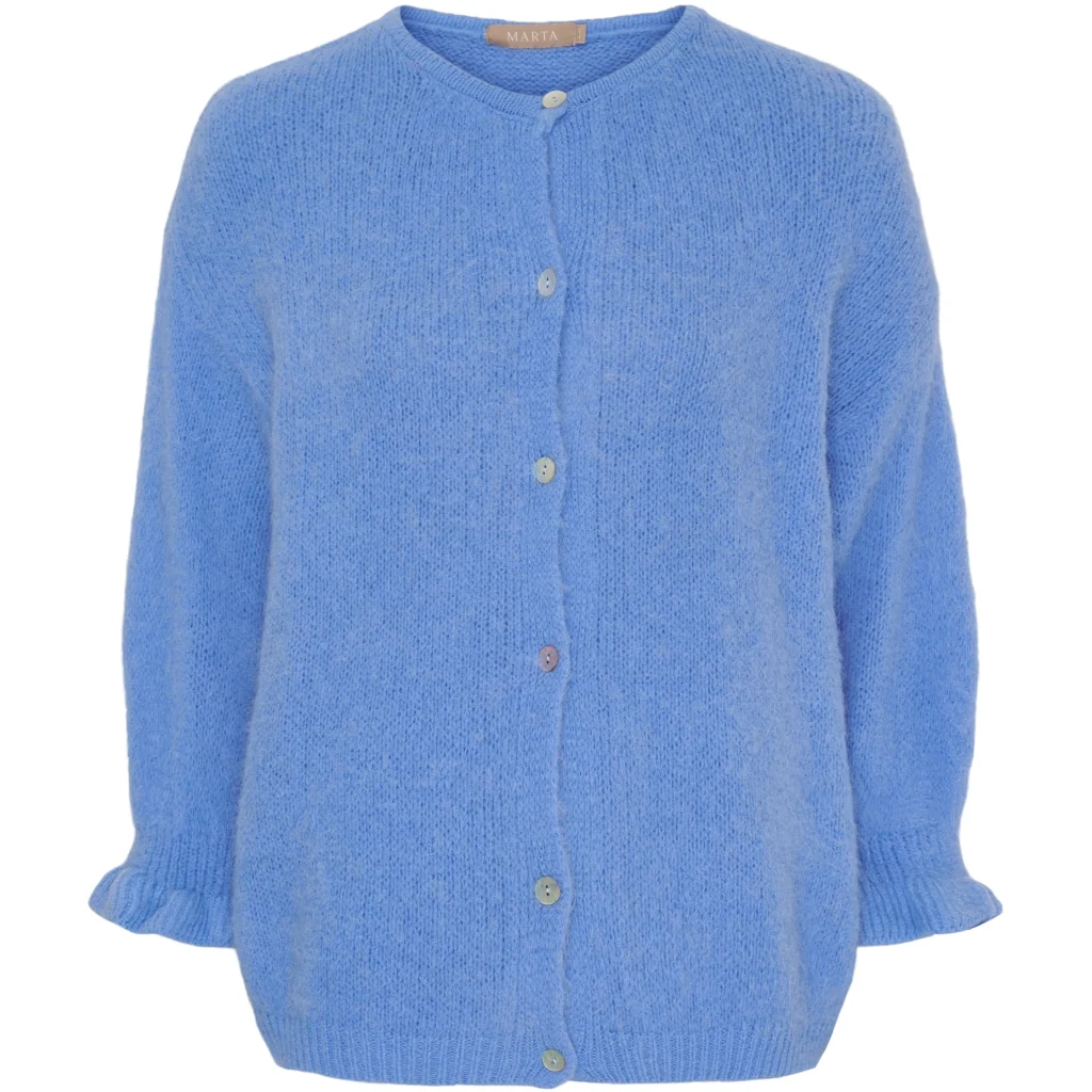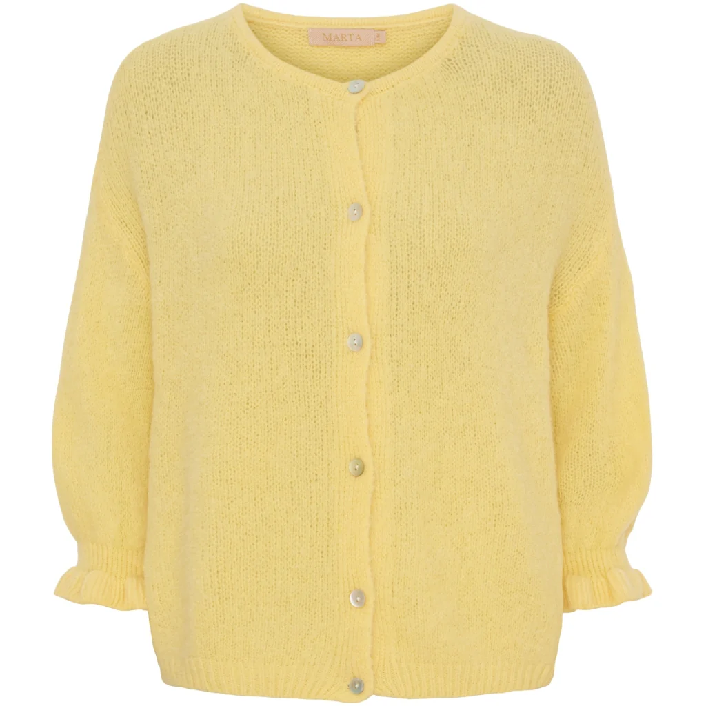 Juliana cardigan 799 kr Färg Svart beige Old pink Salvia Corallo Yellow Strong celeste Jeans Storlek S/M L/XL I lager. Lägg i korgen Produktbeskrivning Recensioner Söt stickad kofta från Marta du chateau med volangdetaljer vid ärmen. Koftan har fina knappar längs framsidan och är med 3/4 ärmar. Helt perfekt för vardagsbruk. Styla den med både jeans, kostymbyxor och kjolar - möjligheterna är många. - Vardagsvänlig- Volangdetaljer- Lätt att stylaMaterial: 38% Polyamid19% Akryl13% Babyalpacka10% Ull3% ElastanS/MBröst: ca. 112 cm.Längd: ca. 54 cm.L/XLBröst: ca. 118 cm.Längd: ca. 58 cm.