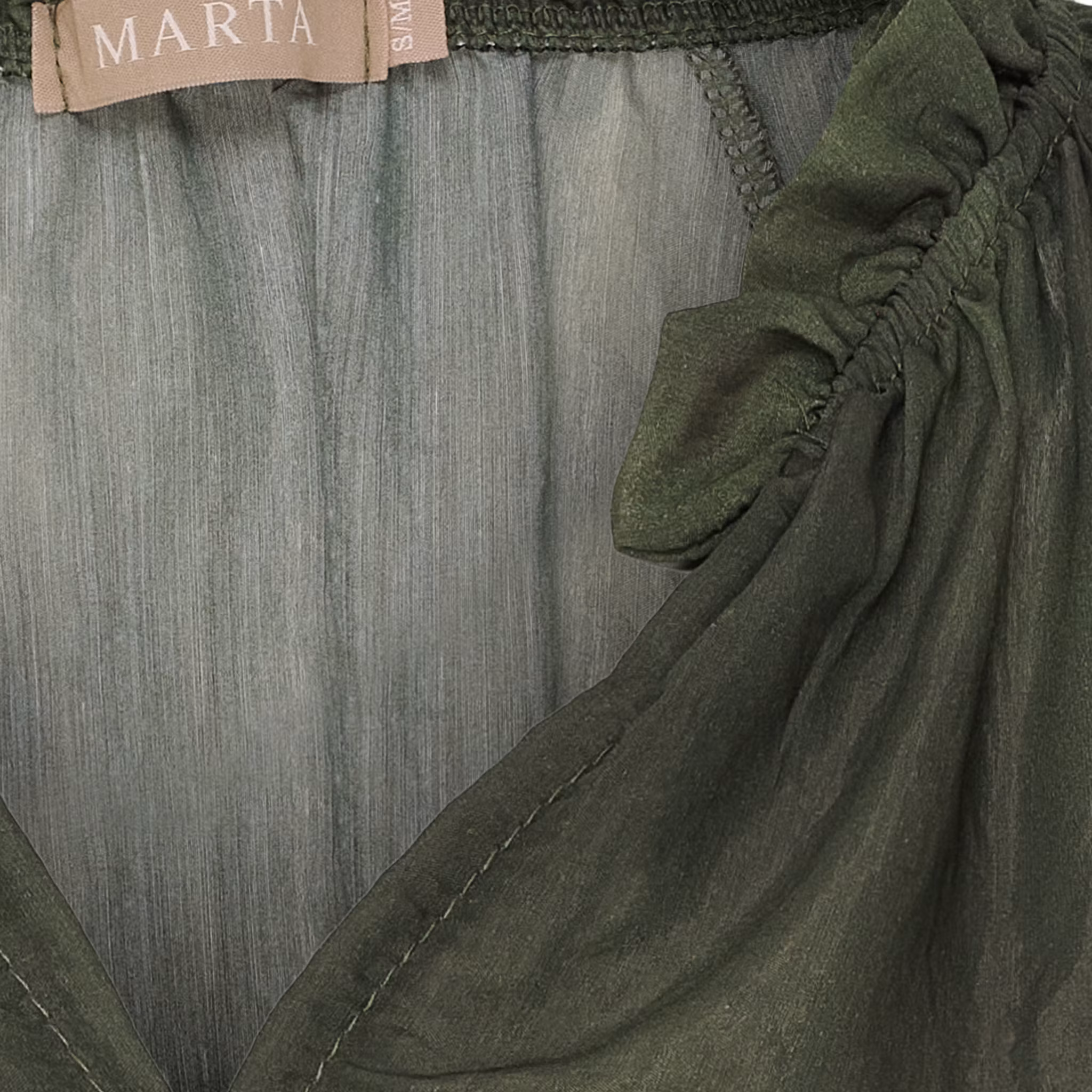 Belladonna shirt 599 kr Färg Military Marrone Storlek S/M L/XL I lager. Lägg i korgen Produktbeskrivning Recensioner Söt blus från Marta du Château i en snygg tryck. Blusen har en V-ringning med volangdetalj och är lite längre bak än fram. Den kan stylas med både jeans och sneakers för en vardagslook, eller en kjol och ballerina för finare tillfällen.- Snyggt tryck- Löst passform- Fina detaljerMaterial 100% viskosS/MBröst: 118 cmLängd: 60 cmL/XLBröst: 120 cmLängd: 62 cm