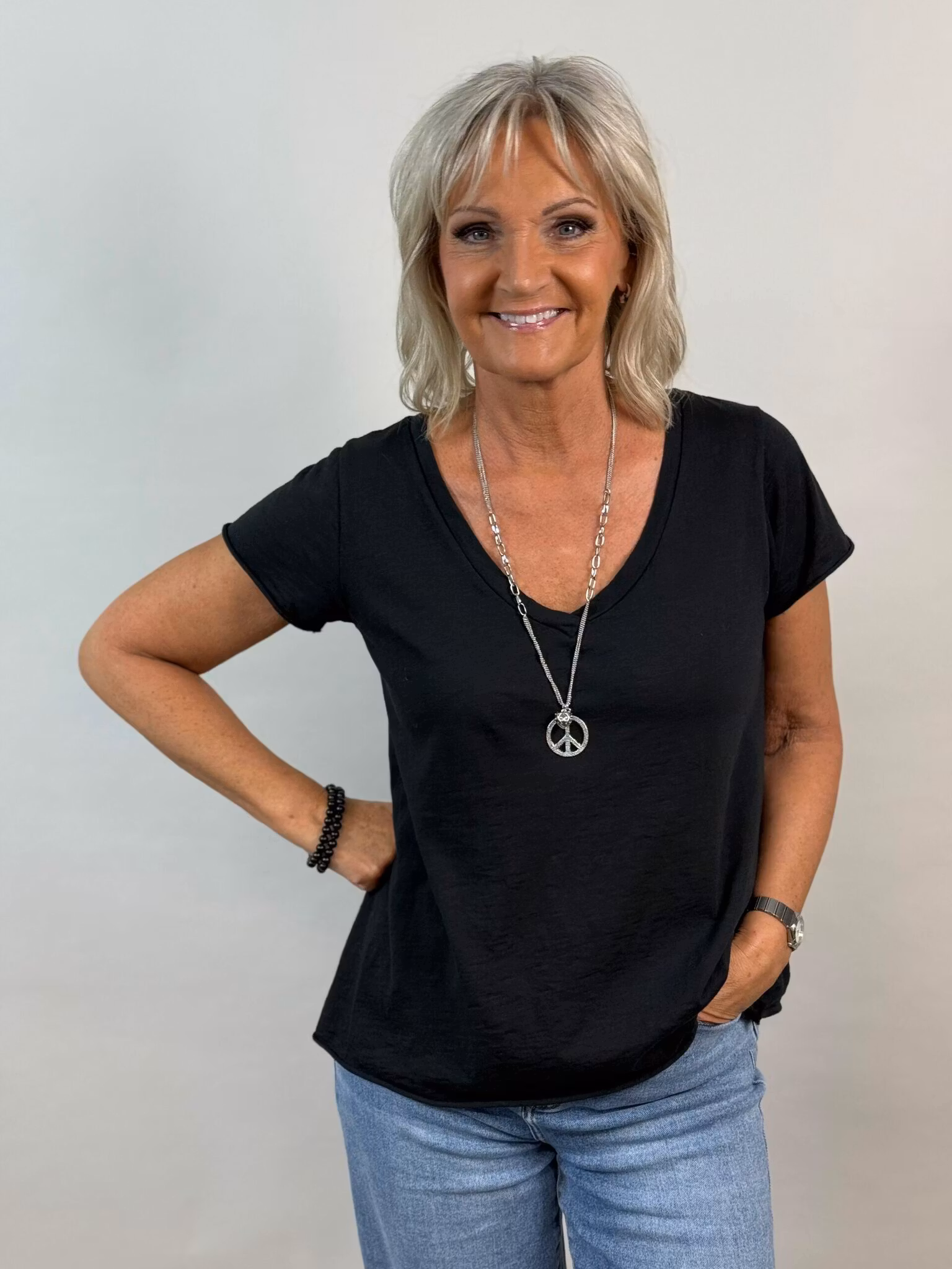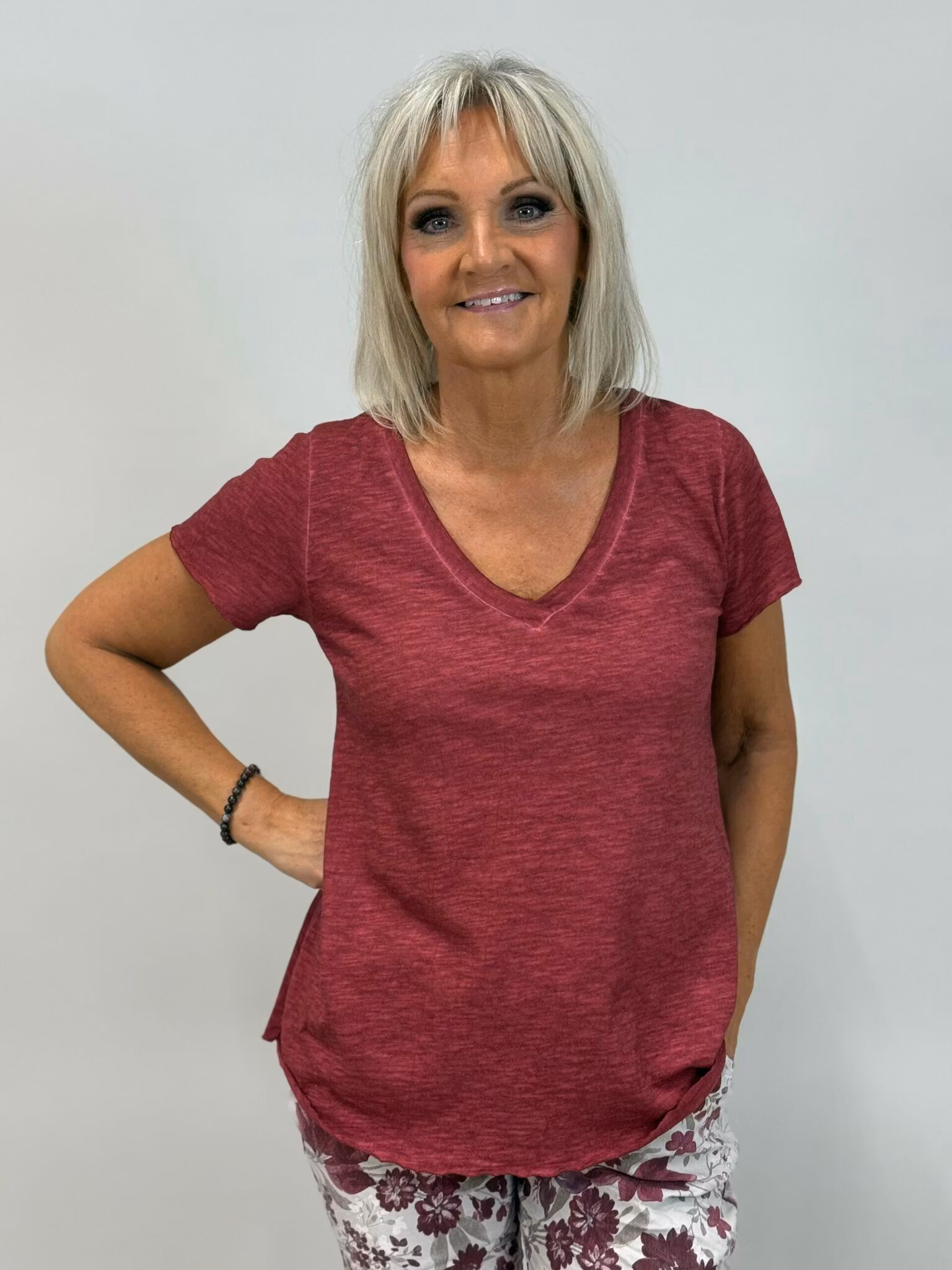 Tuva T-shirt 329 kr Färg Vinröd Brun Svart Army-grön Storlek S/M L/XL I lager. Lägg i korgen Produktbeskrivning Recensioner A-formad T-shirt med v-hals från märket mix by heart, Det kan förekomma vissa färgskiftningar i tyget Material 100% bomull