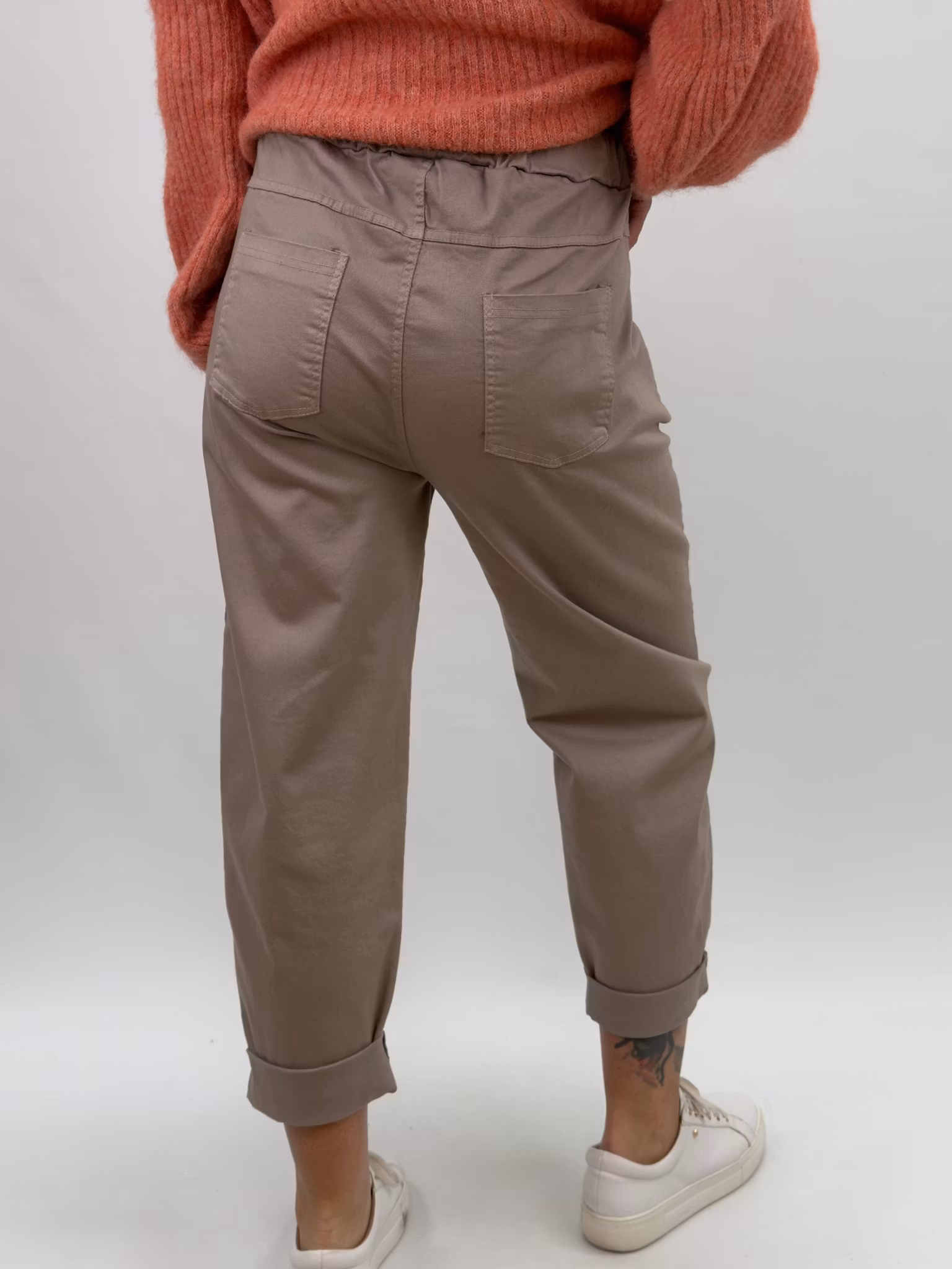 Zelia är ett par trendiga bomullsbyxor med avslappnad passform och dekorativa nitar vid fickorna. De uppvikta bensluten och den mjuka midjan gör dem både bekväma och snygga – perfekta för en cool vardagslook med attityd. Är i storlek Onesize (passar enligt leverantören storlek 34-44) kommer från märket gemini