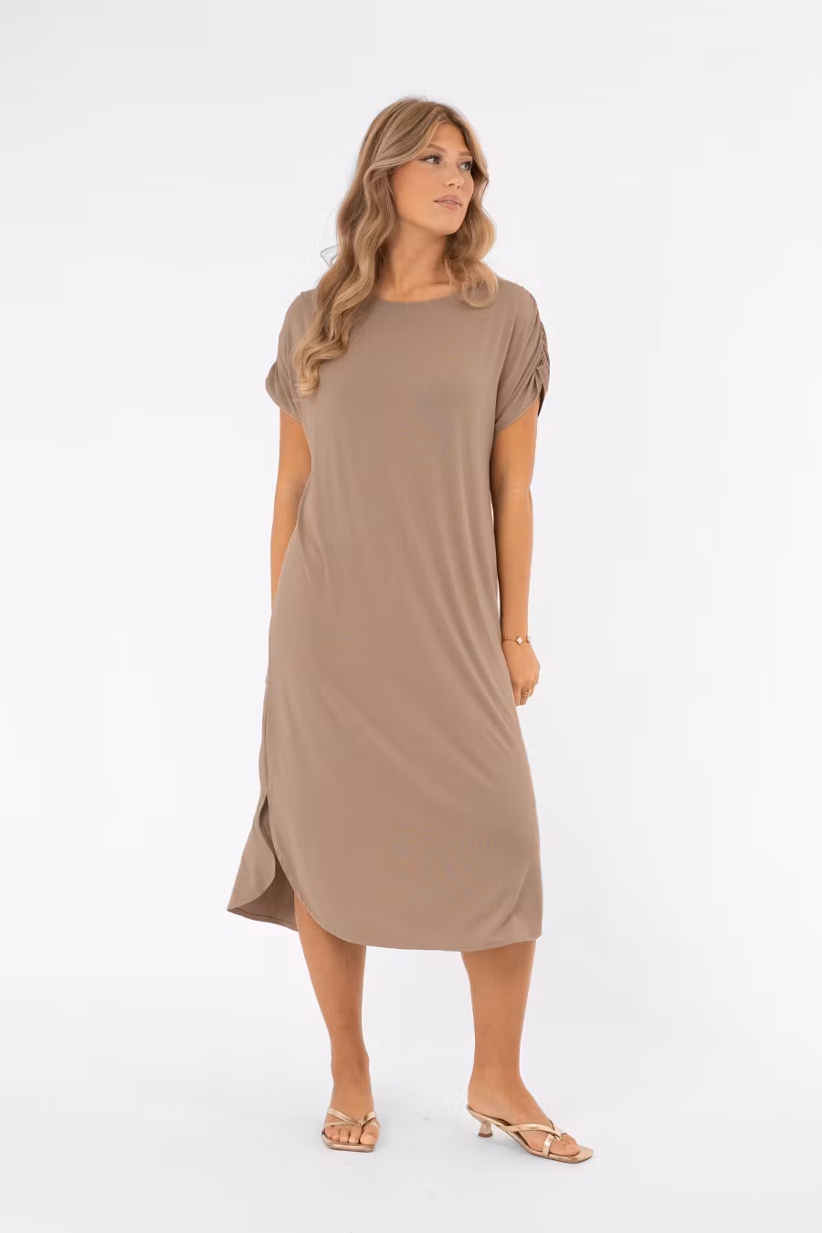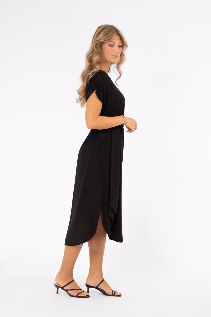 Säsongens skönaste klänning – Ellery! En trikåklänning med ledig och bekväm passform som kan bäras som den är eller markeras i midjan med det medföljande bältet för en smickrande siluett. Klänningen har en båtformad halsringning och lätt utställda axelsömmar som ger en nätt ärm. Ett resårband i axelsömmen skapar en elegant rynkdetalj. Nederkanten är rundad med små slitsar i sidorna, vilket ger en avslappnad men ändå sofistikerad finish. En feminin och mångsidig trikåklänning som passar perfekt till vardag, kontor eller avslappnade festliga tillfällen. Kommer från märket capri collection