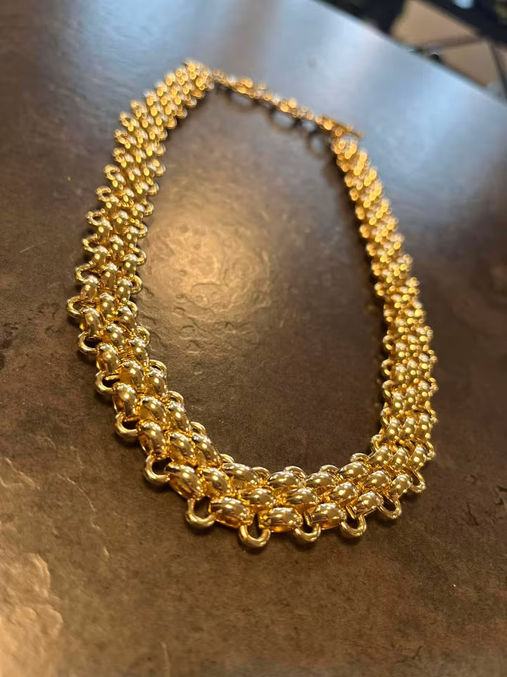 Kraftfullt kort halsband i järn och legering med dubbla kedjor för en modern och iögonfallande look. Ett statement-smycke som förhöjer både vardags- och festoutfits. kommer från märket gemini och vi har även ett matchande Armband som heter sandra armband under kategorin armband