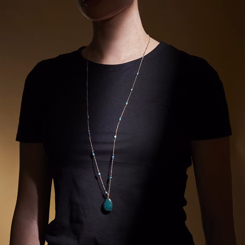 Harper necklace 299 kr Färg Dk grön brunt grå I lager. Lägg i korgen Produktbeskrivning Recensioner Detta vackra Harper halsbandet från The moshi ger din look den extra detaljen. Material:Natural stone 60%Metal 40%