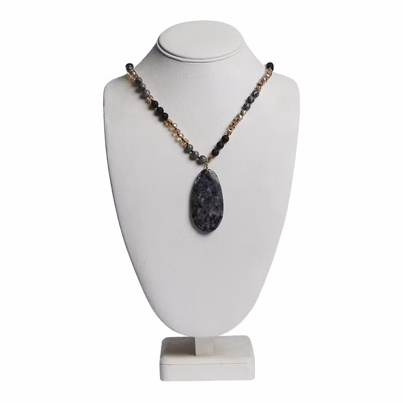 Tuva Necklace 379 kr I lager. Lägg i korgen Produktbeskrivning Recensioner Halsbandet tuva från the moshi ger dig det lilla extra med den fina stenen och pärlorna till. Material:Grey cat eye 40%Black agate 30%/Glass 30%